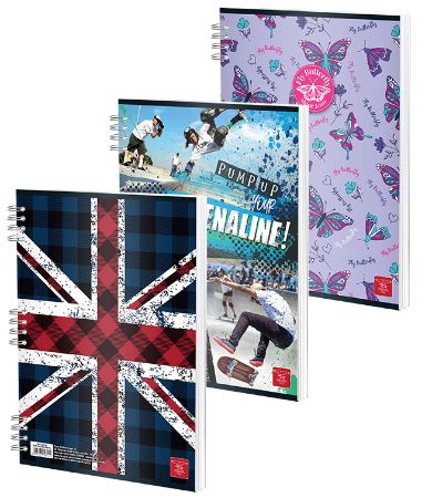 Caiet cu spira metalica dubla, interior 120 file. Coperta fata plastifiata 200 g/mp. Format: A4. Prezinta perforatii pentru indosariere si amorsa de rupere.